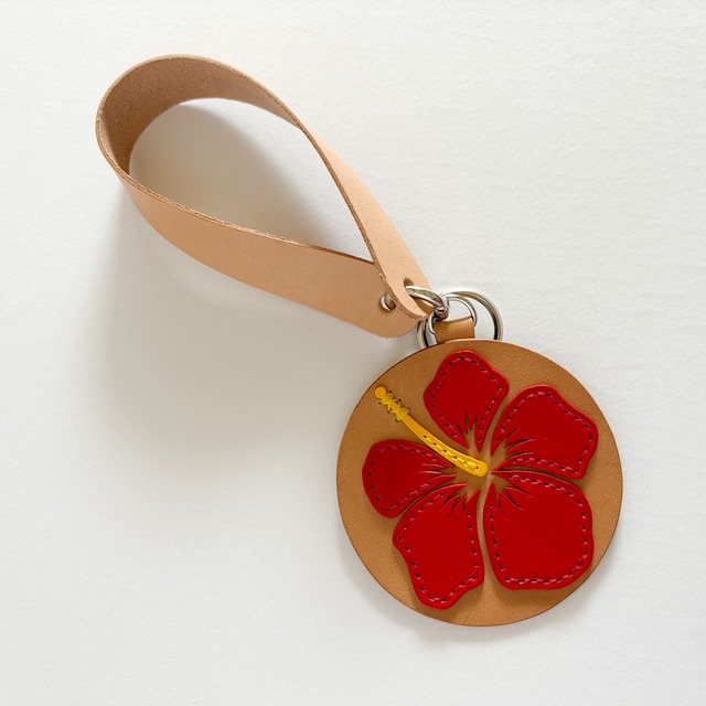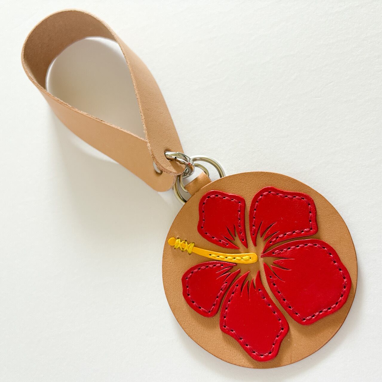 沖縄らしいハイビスカスのパッチをあしらった、レザーバッグチャームが登場!