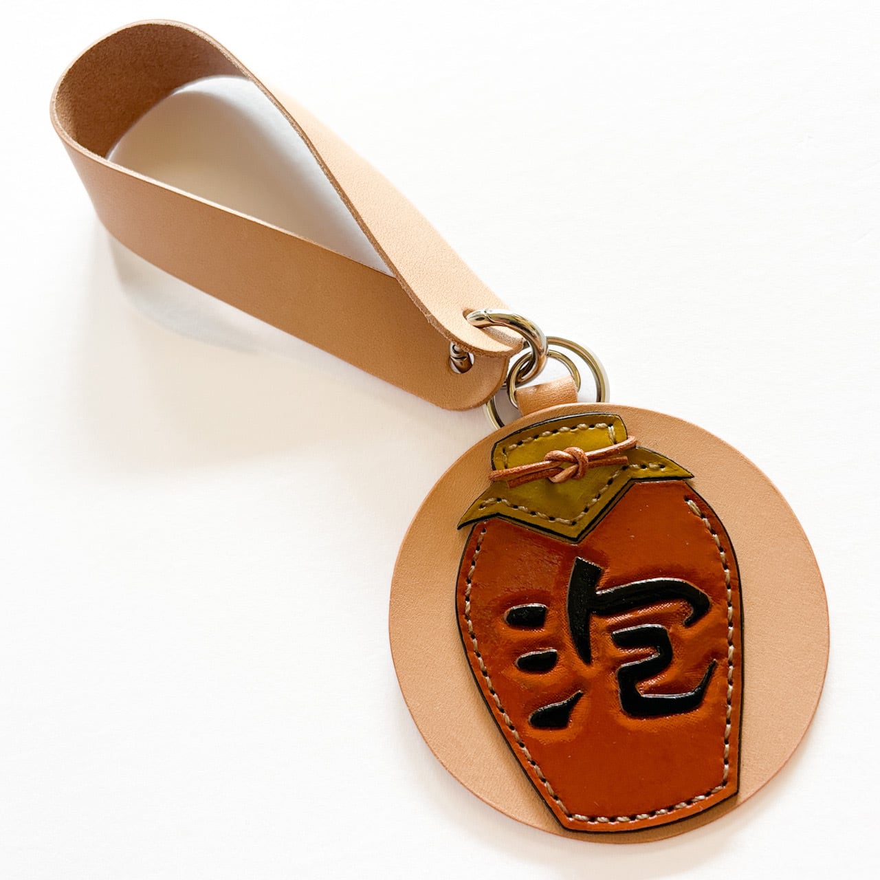 沖縄の伝統的なお酒【泡盛】を熟成させる甕(かめ)をモチーフにした、本革のバッグチャームです。