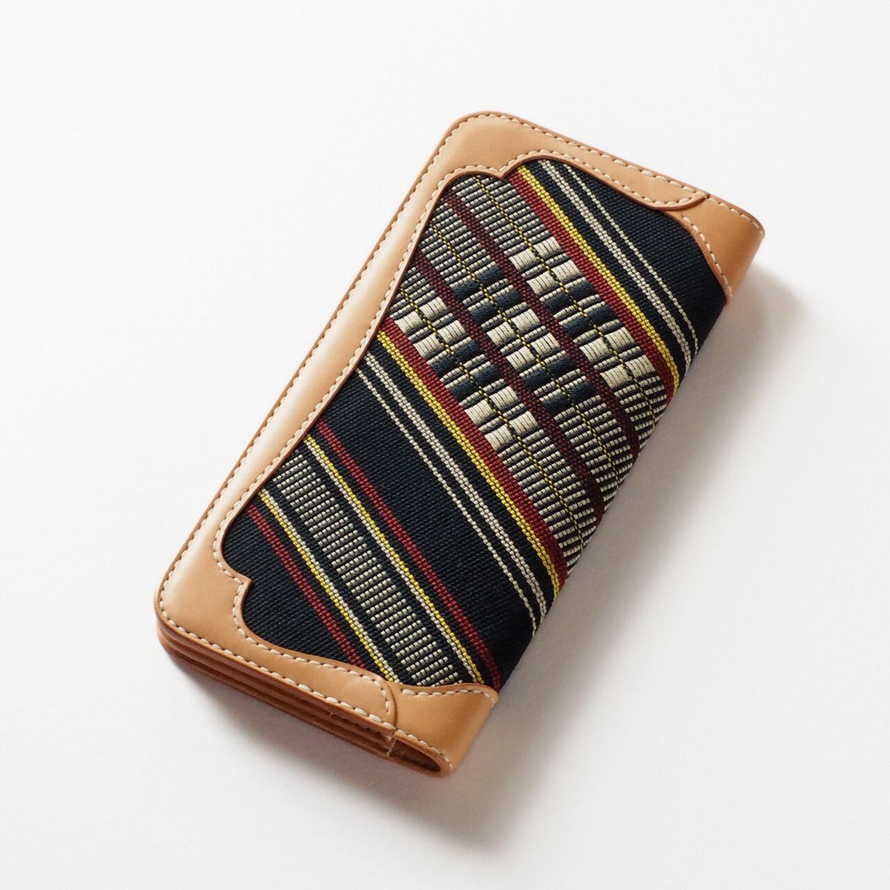 琉球王国の貴族・士族の織物『首里織』で外装を仕立てたロングウォレットです。
