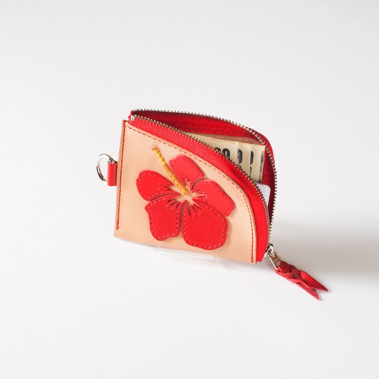 沖縄の自然の中で、美しく咲くハイビスカスをモチーフにしたコインパースです。
