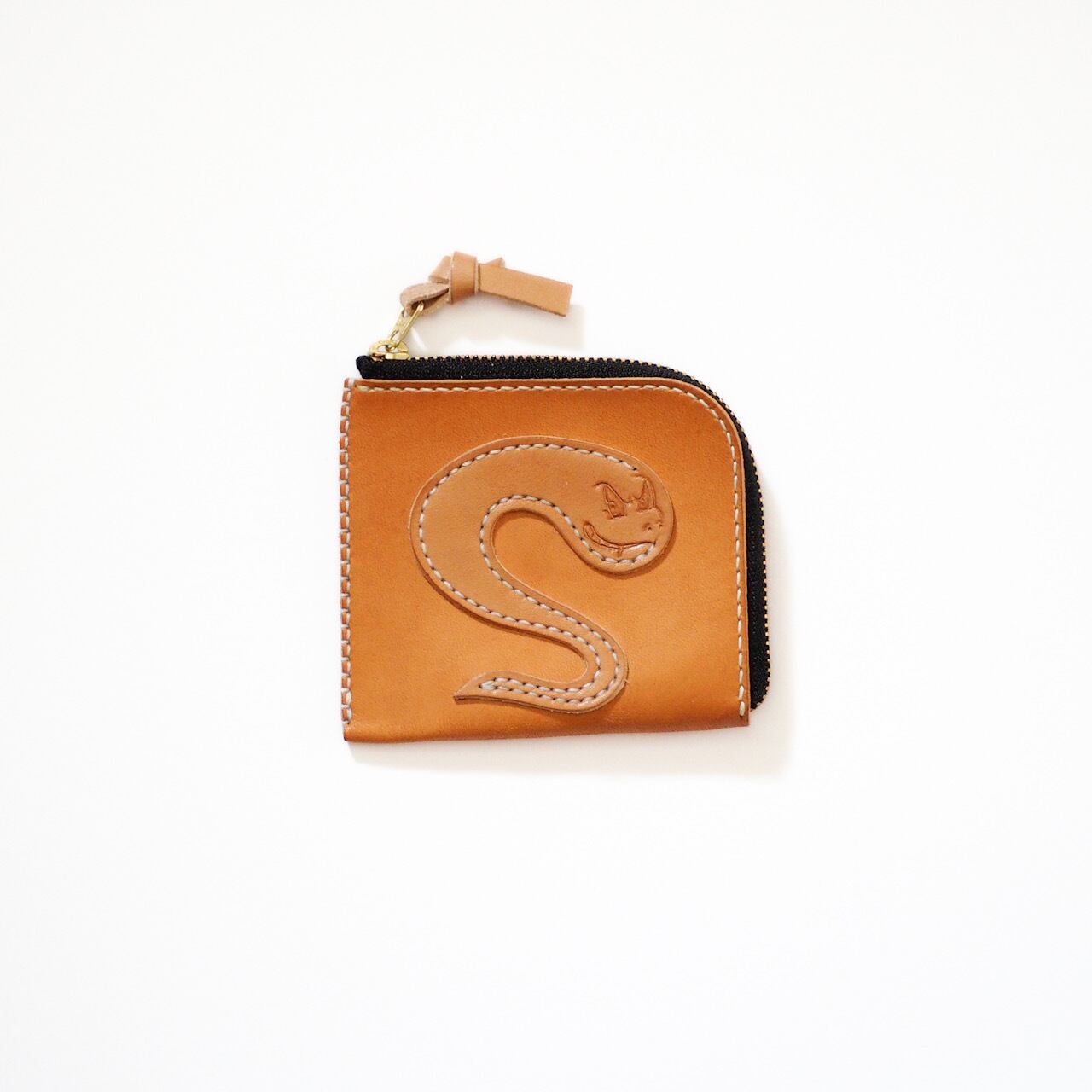 当店ブランド名 SUNKING の頭文字の『S』をデザインしたパッチを前面に配置した、ファスナーコインパース。